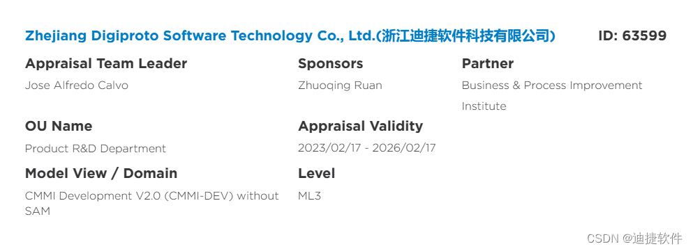 CMMI V3.0 CMMI培训 CMMI认证 CMMI查询 服务项目 关于我们 喜报!浙江迪捷软件通过CMMI认证,软件研发能力获国际认可 2023年2月17日,经美国CMMI研究院权威认证团队严格审核与评估,浙江迪捷软件顺利通过CMMI ML3认证,标志着迪捷软件的软件软件研发标准化流程、开发能力成熟度、项目管理水平等方面已跻身业界领先水平,软件研发能力获得国际认可。CMMI(Capability Maturity Model Integration,软件能力成熟度集成模型)认证,由美国软件工程学会制定的一套专门针对软件产品的质量管理和质量保证标准进行审核,是目前世界公认的软件产品进入国际市场的通行证,也是全球软件界规格最高、难度最大的认证之一。能否通过CMMI认证已成为业内衡量软件企业工程开发能力的重要标准之一。此次迪捷软件能顺利通过CMMI国际评估认证,主要依托于自身深厚的技术研发实力与在一系列嵌入式DevOps、MBSE和数字装备产品及解决方案中积累的丰富的项目过程管理经验,这也标志着迪捷软件在项目管理、技术创新等方面较强的综合实力,对于核心竞争力的提升有着重要意义。迪捷软件是一家专注于安全关键领域数字化转型的公司,创始团队来自清华大学计算机系系统软件和软件工程研究所,自2013年成立以来,始终以“助力中国高端装备制造业的腾飞”为使命,坚持自主研发,攻关「卡脖子」技术,已完成覆盖高端装备需求、设计、开发直至仿真测试等环节的嵌入式DevOps、MBSE和数字装备产品及解决方案的拓展与积累。截至目前,迪捷软件的产品及解决方案已先后在我国C919、飞机发动机、载人航天、火星探测器、核电站、汽车、轨交等领域得到了成功应用。CMMI认证代表着国际上最先进的软件工程方法,此次CMMI认证的通过是对迪捷软件20年来科技创新实力与研发流程规范的认可,既是荣誉也是责任。未来,迪捷软件将继续强化夯实研发水平与专业化能力,助力中国高端装备制造业的腾飞! 免责声明:该信息旨在为读者提供更多CMMI资讯。所涉内容不构成投资、消费建议,仅供读者参考。CMMI培训|CMMI咨询|CMMI认证咨询热线:023-63248819 相关标签:CMMI认证浙江CMMI认证 上一篇:喜报! 一半科技(江苏)有限公司顺利通过CMMI3级认证 下一篇:喜讯! 成都四象联创科技顺利通过CMMI3级认证,软件研发能力获国际权威认可!
